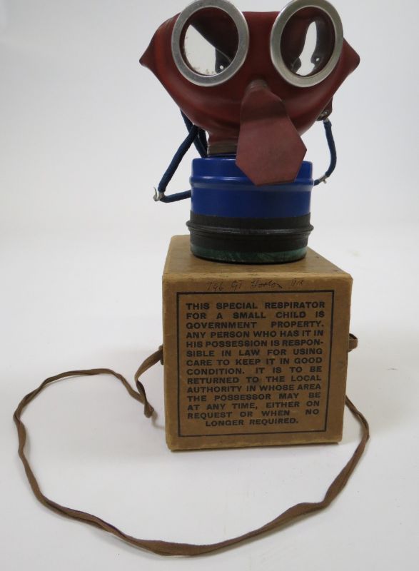 The Government had recognised the difficulty of persuading younger children to wear a mask and had come up with the so-called ‘Mickey Mouse’ pattern. This was moulded in red and blue plastic in an attempt to make it more child friendly. It was not always successful, as Hazel recorded: