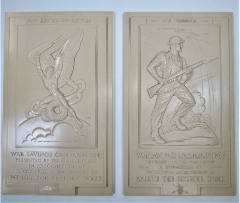 The second plaque commemorates the efforts made during the ‘Salute the Soldier’ campaign of 1944. It depicts a typical British ‘Tommy’ in shirt-sleeve order and 1937 Pattern ammunition pouches advancing with his Number 4 Enfield Rifle and fixed Spike Bayonet.